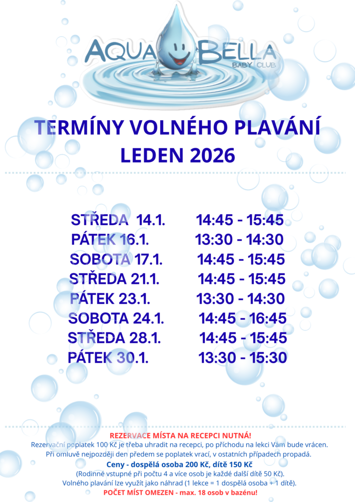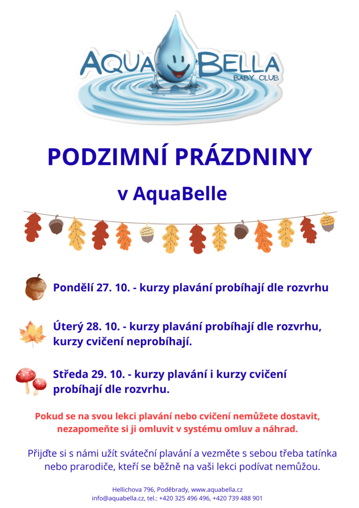 - Po konzultaci s rodiči si AquaBella Baby Club vyhrazuje právo na přesun dětí v jednotlivých skupinách.