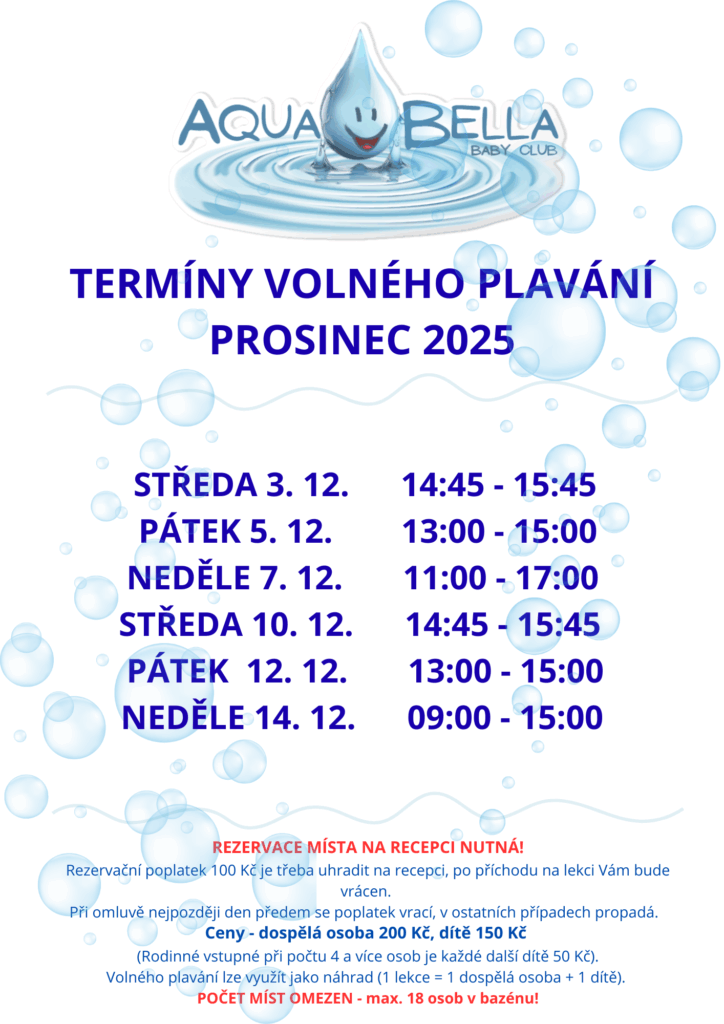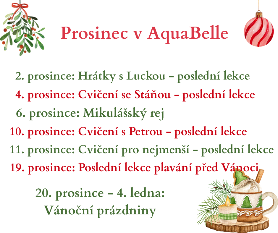 Poslední měsíc v roce toho má každý nad hlavu, proto jsme vám přehledně sepsali, jak bude probíhat prosinec v AquaBelle.
